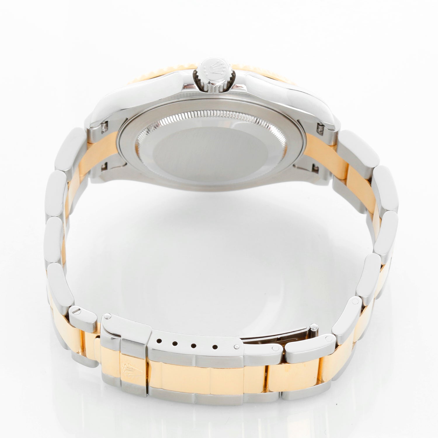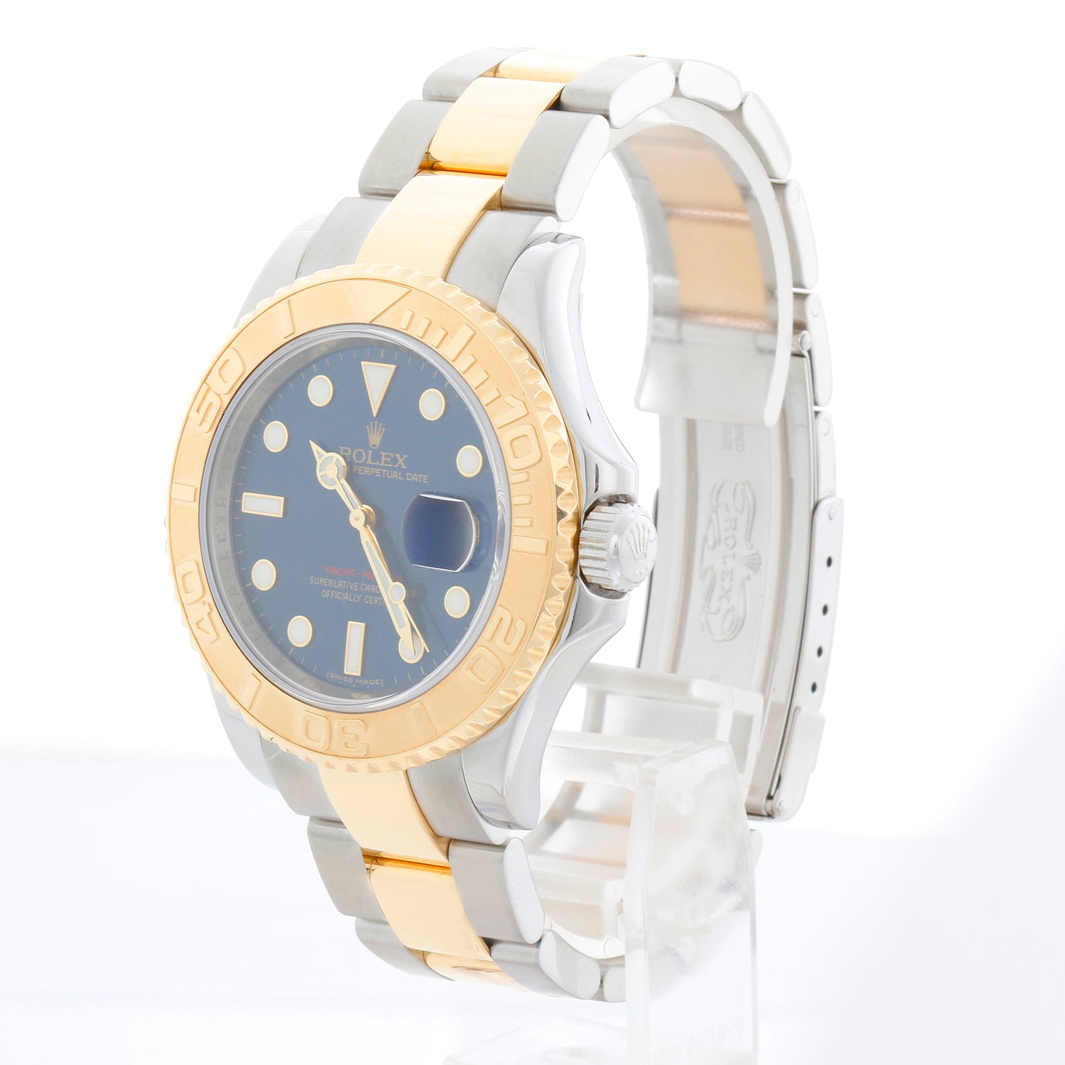 Rolex Yacht-Master Steel & Gold Men's 2-Tone Watch 16623 - Automatic winding, 31 jewels, Quickset, sapphire crystal. Yacht-Master. Stainless steel case with 18k yellow gold bezel ; inner bezel engraving (40mm diameter). Blue dial with luminous markers. Stainless steel and 18k yellow gold Oyster bracelet with flip-lock clasp. Pre-owned with Rolex box and books.
