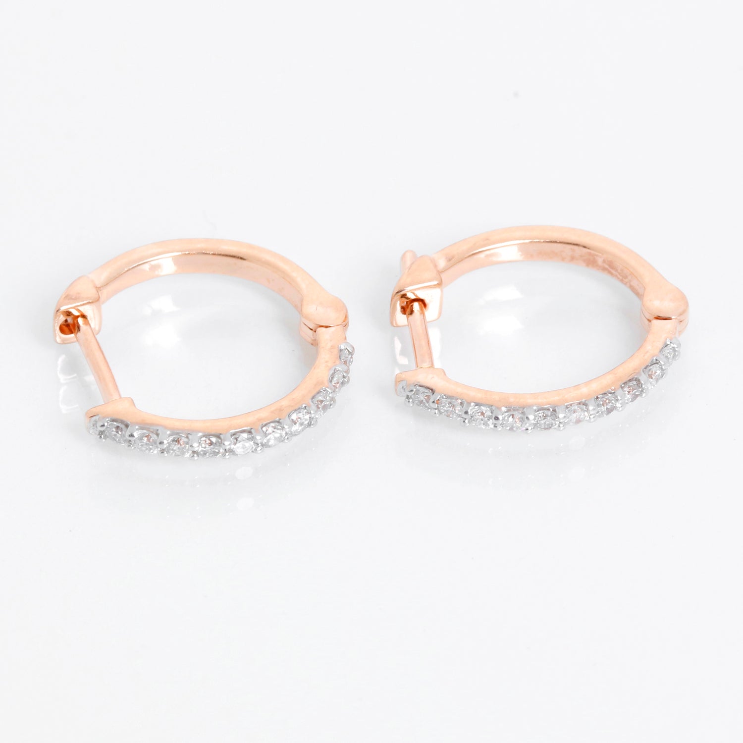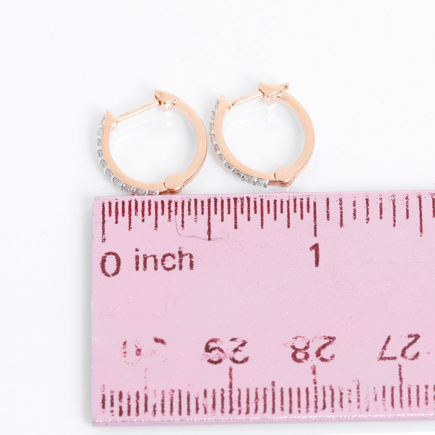 Diamond 14k Rose Gold Mini Hoop Earrings Apx. 13 cts. - . Look-alikes of the $750 Nikki Baker hoops that are shown on her site to be worn by Katy Perry and Kaley Cuoco. These mini hoops are apx. 1/2-in. x 1/2-in. 14k rose gold with diamonds apx. 13 cts.